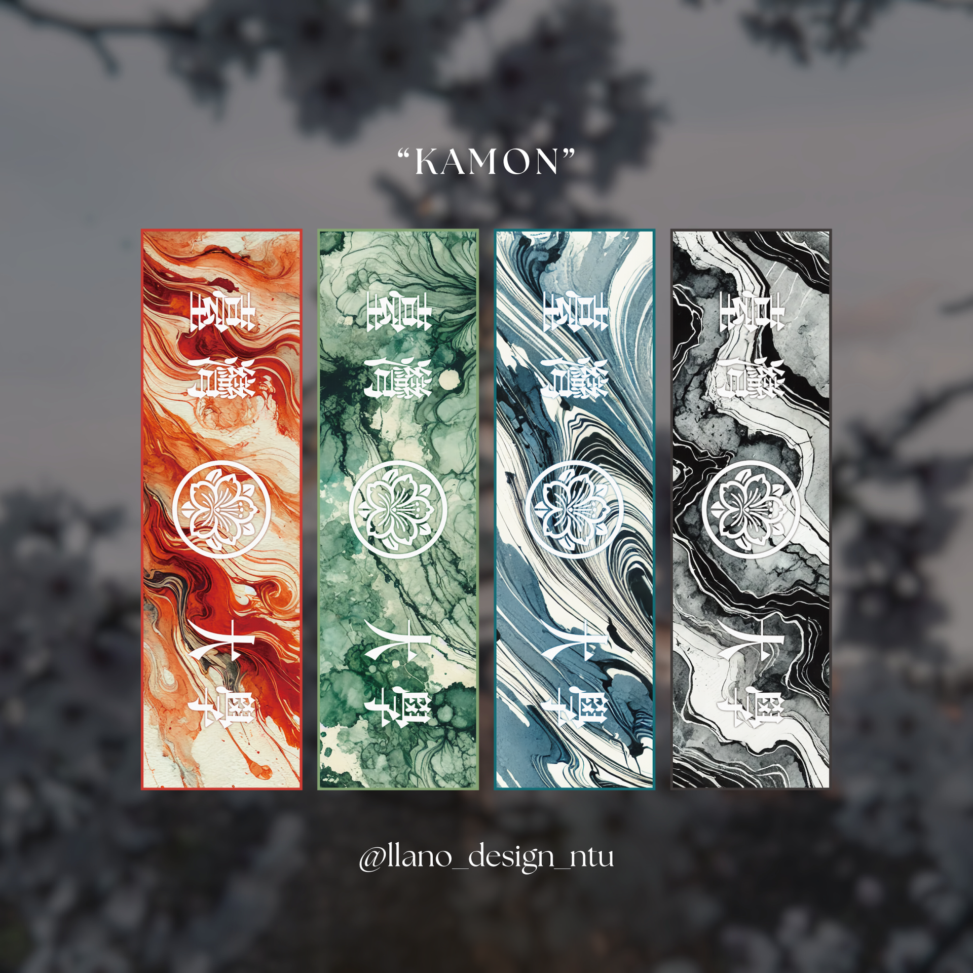 以日本戰國時代的「家紋」為靈感,設計出日式風格的「杜鵑花」圖樣。
